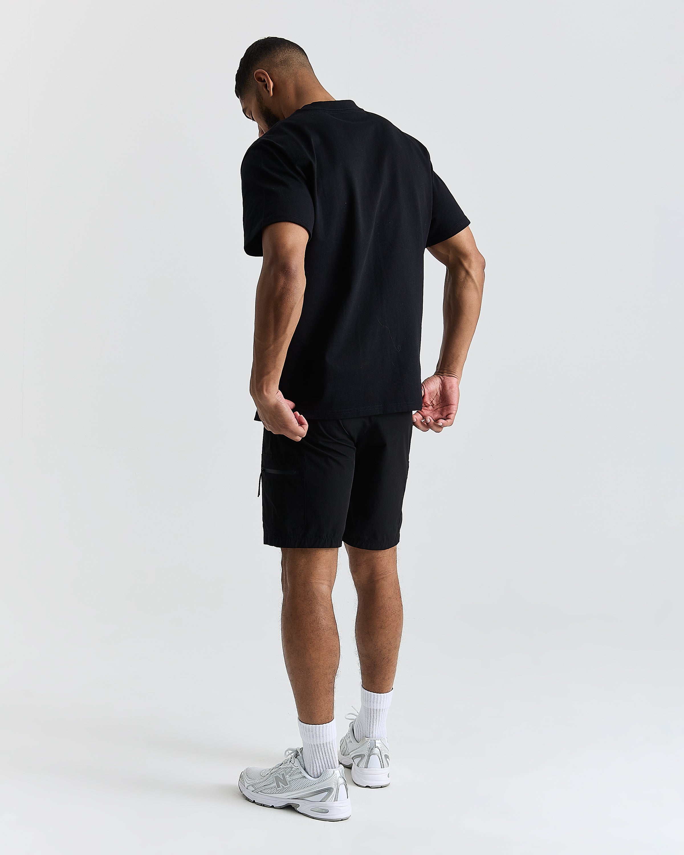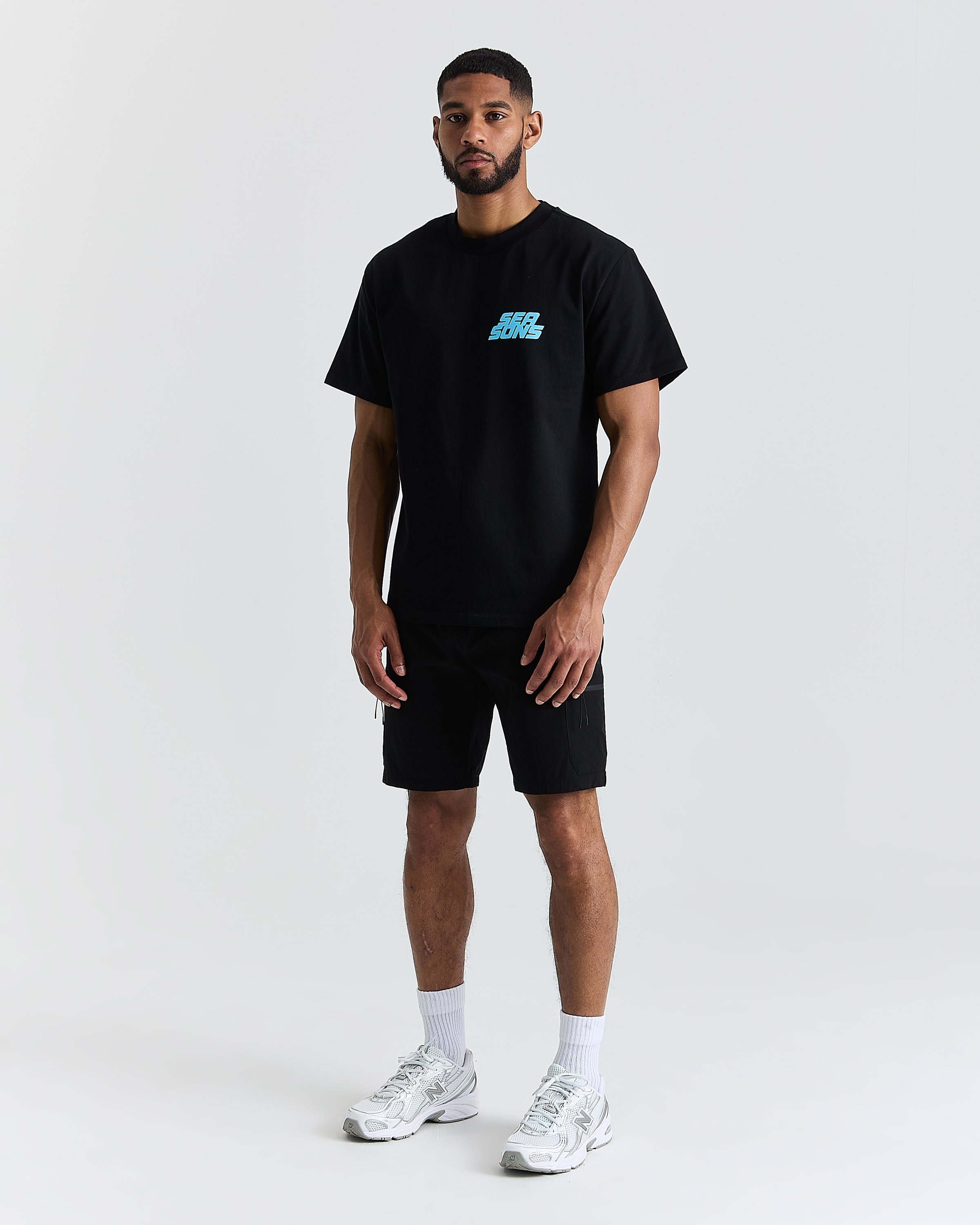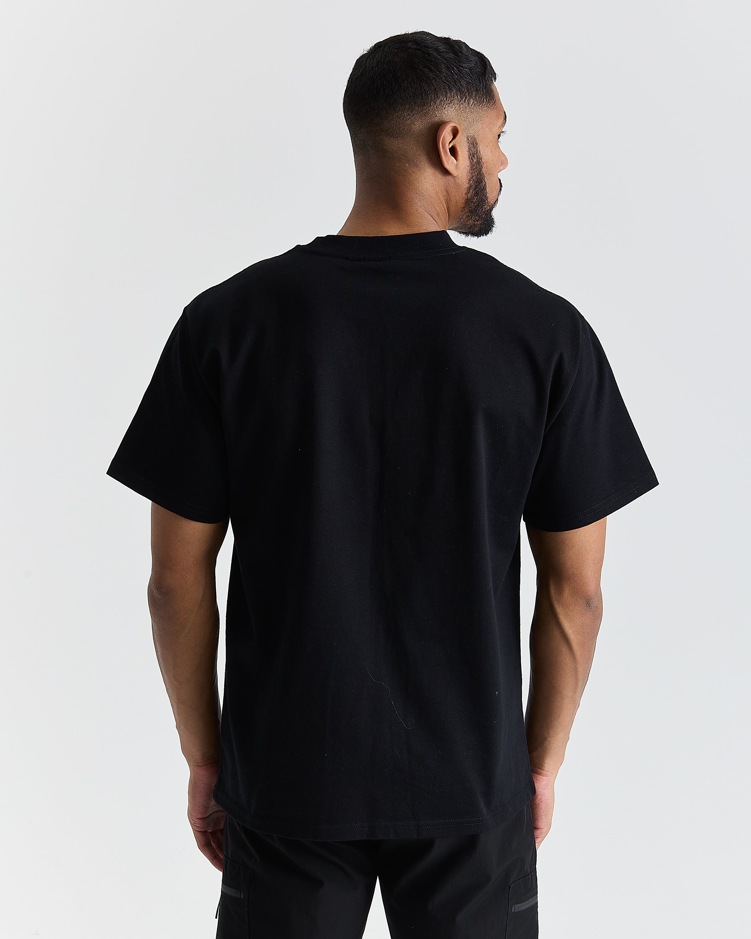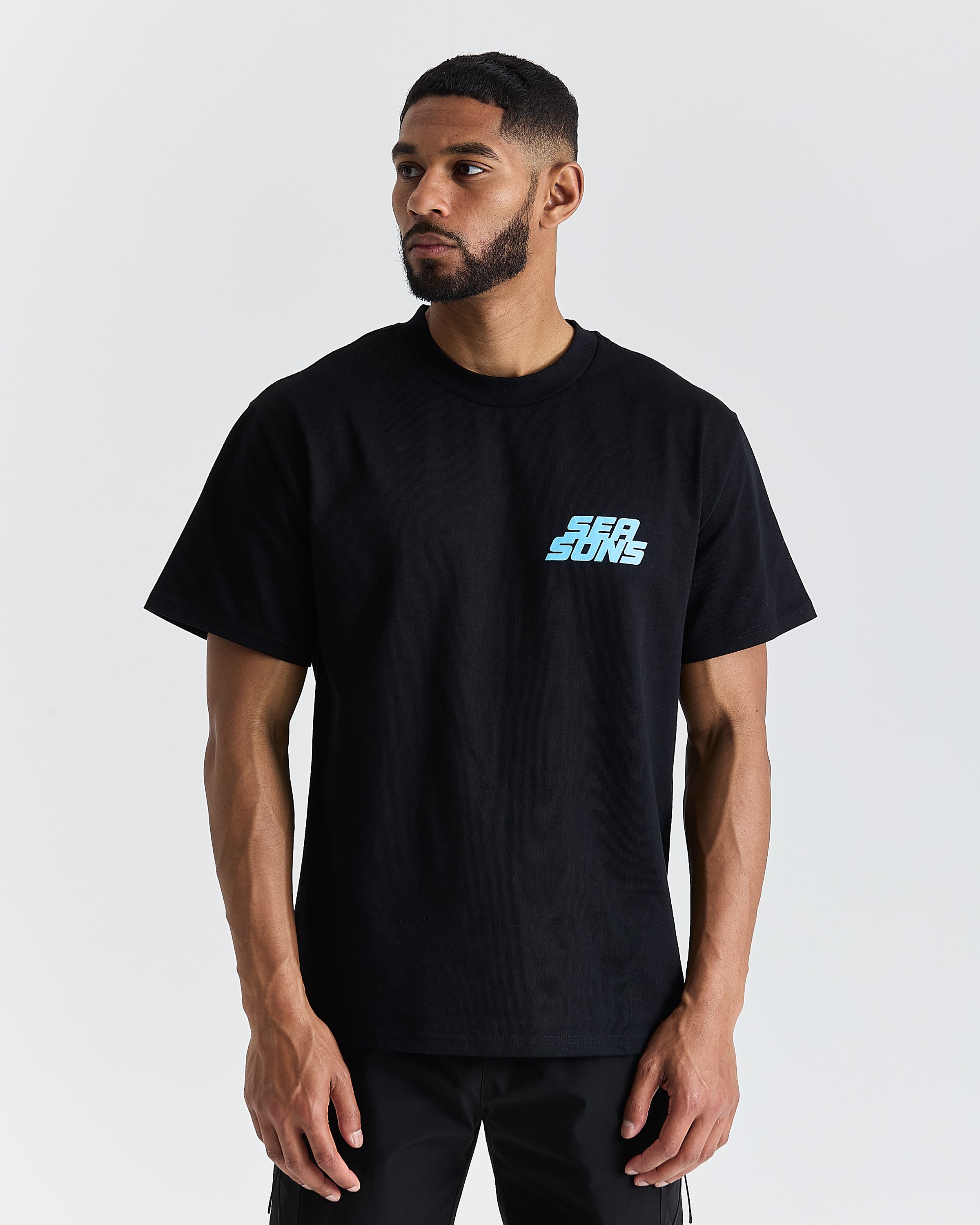 Short sleeve jersey tee in black. Slight oversized fit in a medium weight cotton. Ribbed crewneck collar. Seasons graphic on the front.